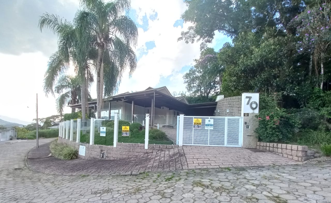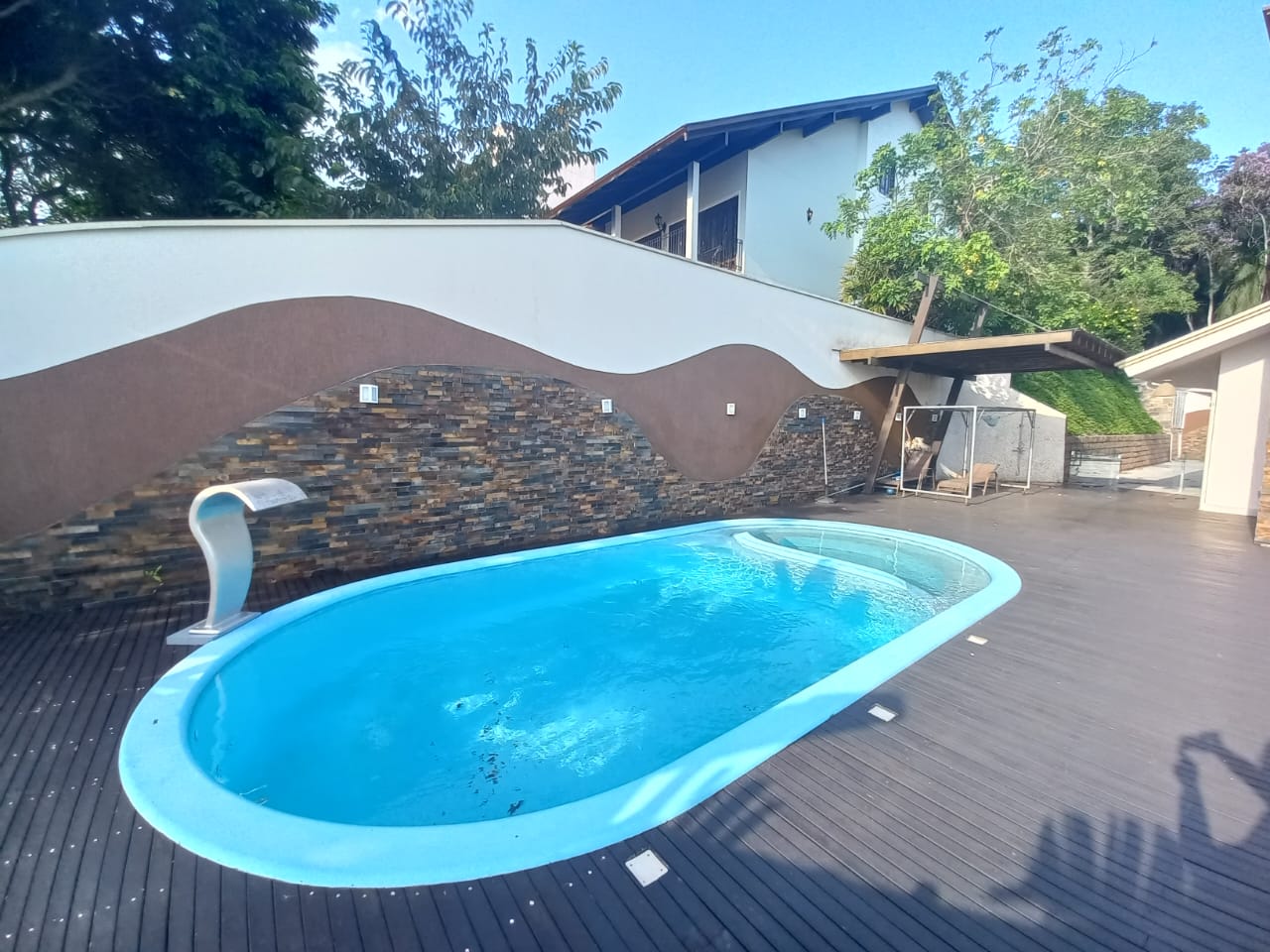 Belíssima Casa de alto padrão, mobiliada, em área nobre de Timbó! Contém 4 dormitórios (1 suíte com hidromassagem e closet), 3 banheiros e 2 lavabos, 2 salas de estar amplas, sala de jantar com área de festas com churrasqueira e fogão à lenha, cozinha com móveis sob medida, área de serviço, 2 varandas e garagem para 5 carros. Possui ainda uma linda área externa, com piscina aquecida, um lago em meio à natureza e um poço de água mineral, tudo para o conforto da sua família! O imóvel fica em local alto, próximo a mercados, restaurantes e comércios em geral, se tornando uma ótima opção de investimento.